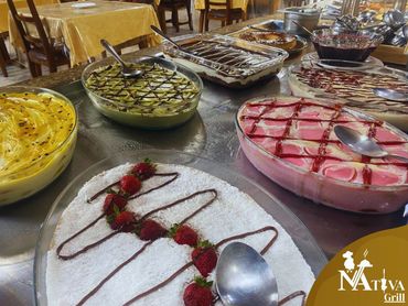 Nosso cardápio no Nativa Grill é uma verdadeira celebração de sabores. Além das carnes, oferecemos uma variedade de acompanhamentos deliciosos, saladas frescas e sobremesas irresistíveis. cada dia com delícias diferentes.